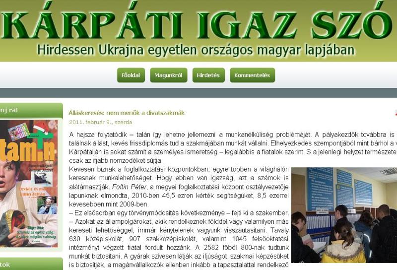 Forrás: Kárpáti Igaz Szó (2011. február 10.)